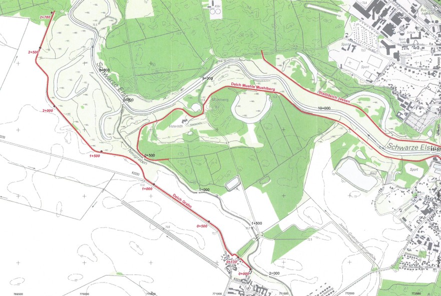 Ziel der geplanten Maßnahme ist der HQ100 sichere Schutz der Bebauung in den OL Benkendorf, Rockendorf und Hohenweiden.