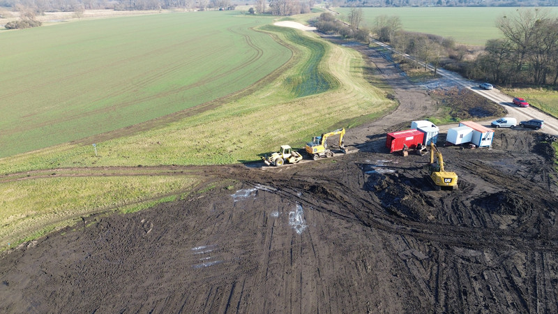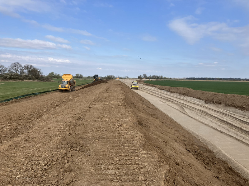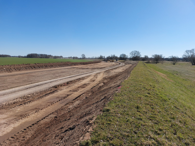 Das gesamte Bauvorhaben hat eine Länge von ca. 2.900 m. Der benötigte bindige Boden (Ton) soll vom Bodenlager des LHW antransportiert werden.