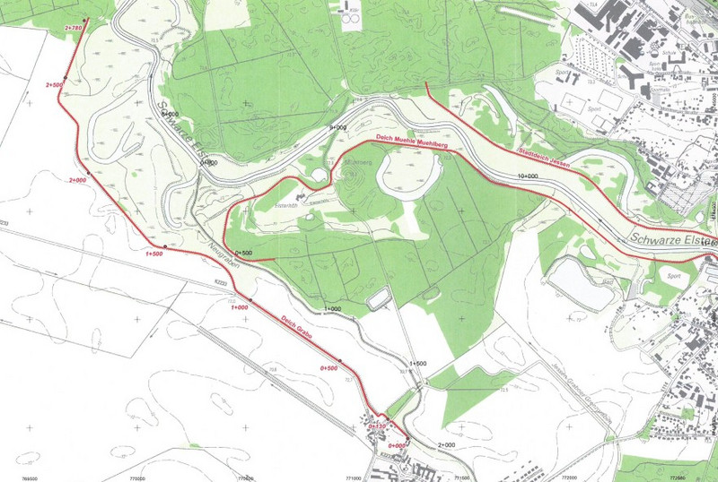 Das Vorhaben ist unterteilt in 1.600 m DIN-gerechte Sanierung auf der bestehenden Trasse sowie 700 m Deichneubautrasse.