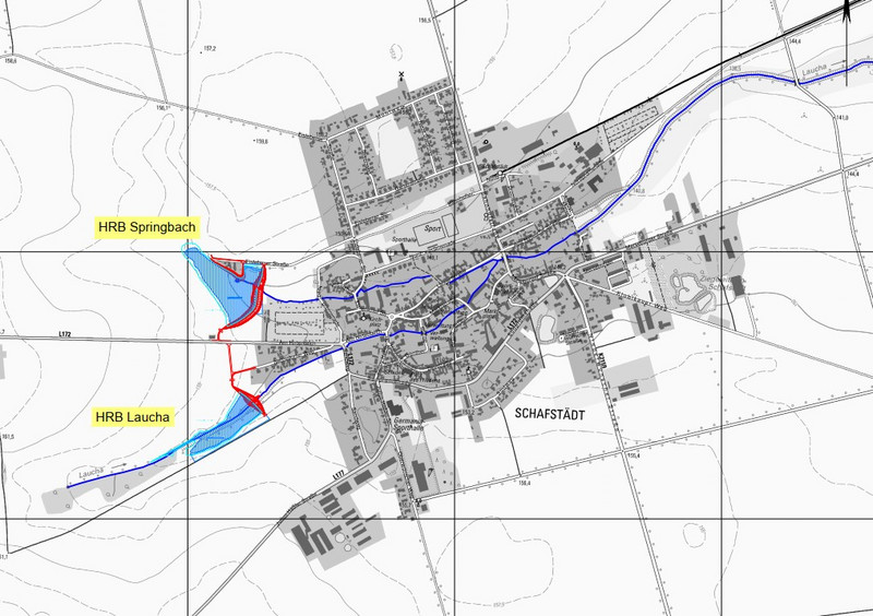 Zum Schutz der Stadt Schafstädt vor einem Hochwasser HQ100 ist der Bau jeweils eines Hochwasserrückhaltebeckens (HRB) an den Gewässern Laucha und Springbach vorgesehen. Für beide Hochwasserrückhaltbecken liegt von Seiten der Planfeststellungsbehörde die Genehmigung.