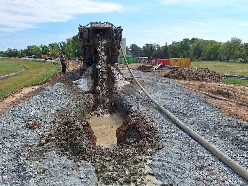 Das benötigte Stützkörpermaterial (Sand) wird angeliefert.