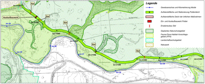 Schutz der Ortslagen Rösa und Brösa vor einem Hochwasser HQ100 (statistisch alle 100 Jahre wiederkehrendes Hochwasser). Dazu ist eine Reduzierung der Scheiteldurchflüsse in stromabwärts liegende Abschnitte der Mulde durch Hochwasserrückhalt im Polder notwendig. Die Länge des Bauabschnitts beträgt 4,4 km und es werden 4 Sielbauwerke errichtet.